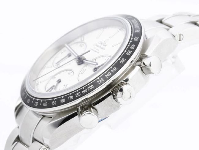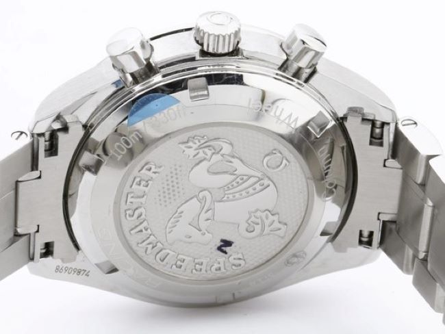 Chronograph – three sub-dials displaying: 60 second, 30 minute and 12 hour. Omega calibre 3330 automatic movement with a 52-hour power reserve.