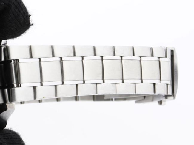 NEAR NEW CONDITION. 2018 WATCH. REAR STICKER. Description; Stainless steel case with a stainless steel bracelet. Fixed stainless steel bezel with black aluminium top ring showing tachymeter markings. White dial with matt black hands and index hour markers. Minute markers around the outer rim. Dial Type: Analog. Luminescent hands and markers. Date display at the 6 o’clock position.