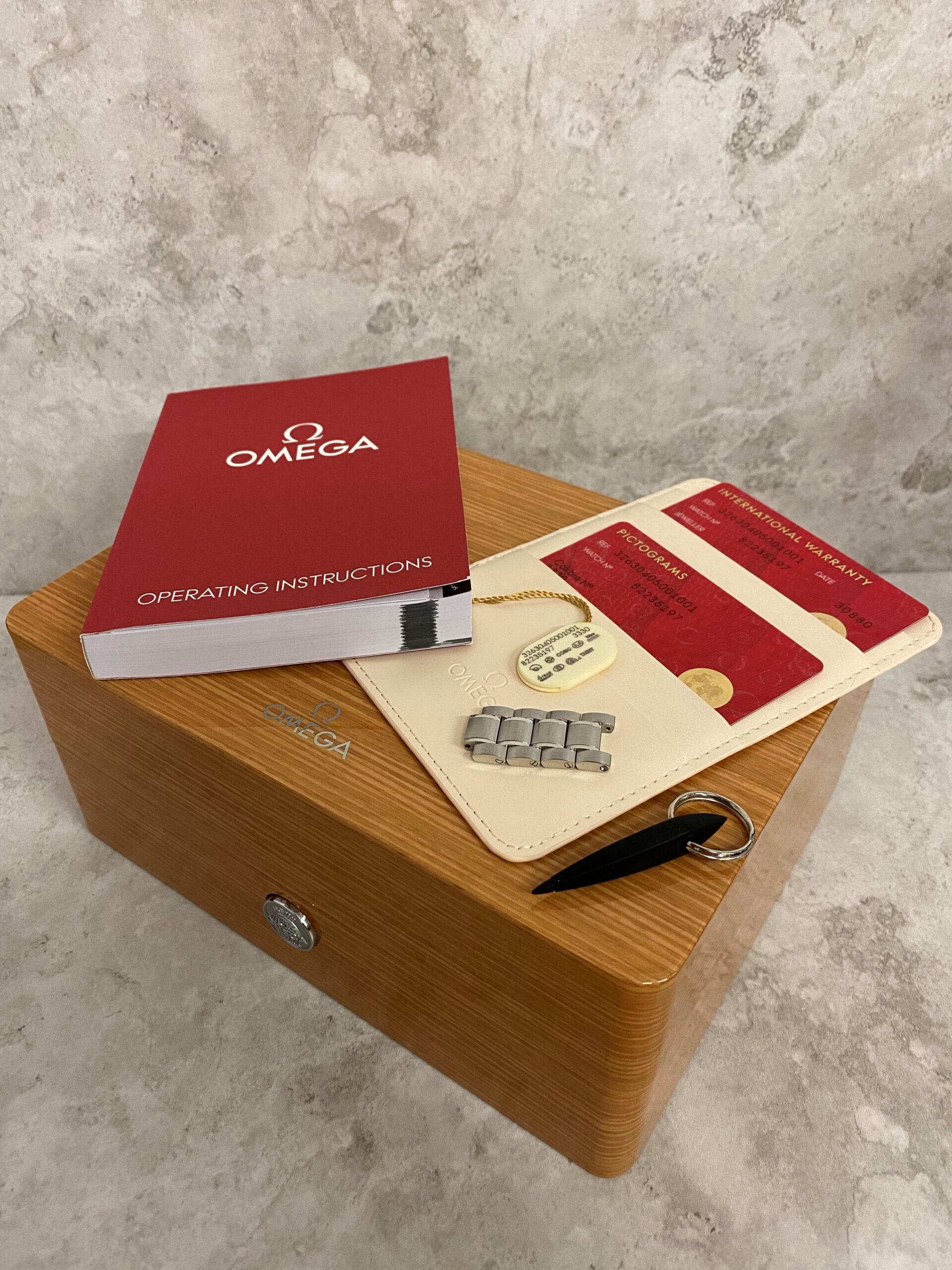 ORIGINAL AND UNPOLISHED. FULL SET. ORIGINAL BOX, PAPERS AND MANUALS. ORIGINAL SPARE LINKS.