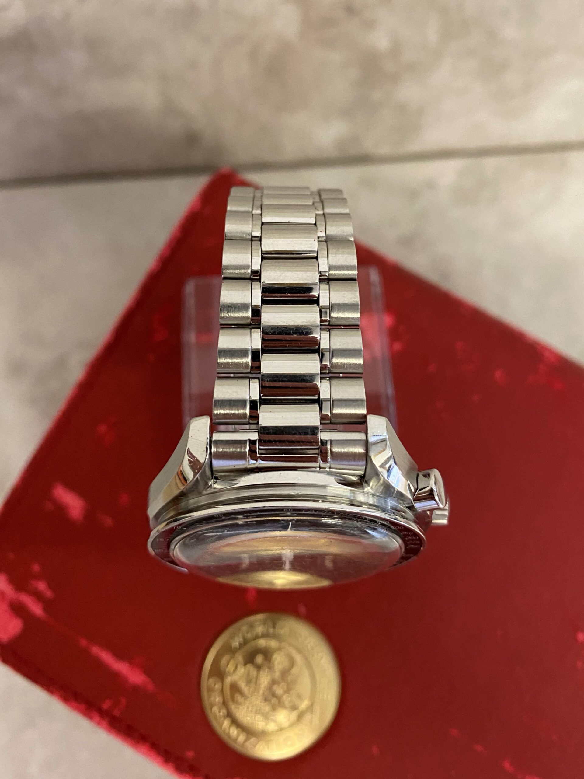 The Omega Speedmaster is one of the most iconic chronograph models ever made. Famously, it was a Speedmaster Professional that Buzz Aldrin wore when he stepped onto the moon in 1969. The flat black bezel is calibrated for tachymeter and the steel case has flaring sides with combinations of polished and satin finishes. The stainless steel bracelet is detachable and this watch may be worn with a strap if preferred. Named the ‘Reduced’ Speedmaster this model has a slightly smaller case diameter of 39mm rather than the 42mm diameter of the standard Speedmaster, it is also an automatic rather than manually wound version of the Speedmaster family.