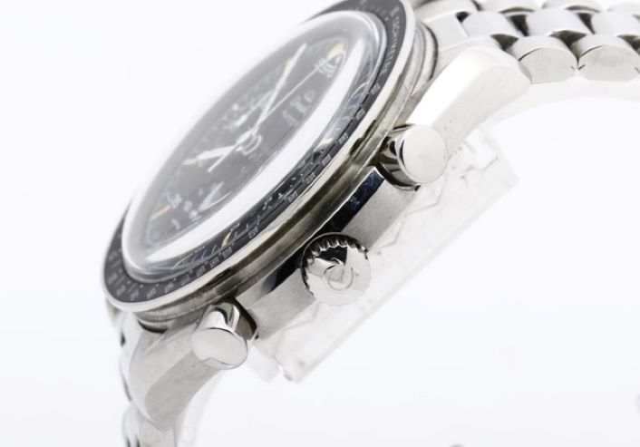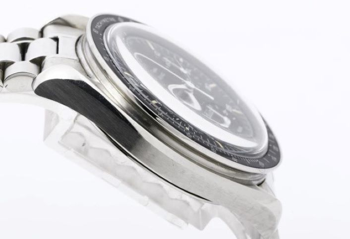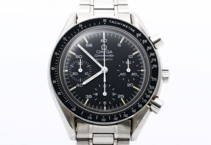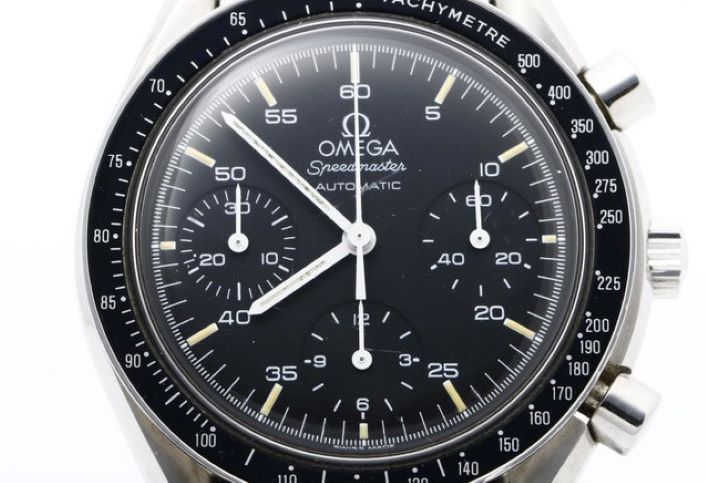 The Omega Speedmaster is one of the most iconic chronograph models ever made. Famously, it was a Speedmaster Professional that Buzz Aldrin wore when he stepped onto the moon in 1969. The flat black bezel is calibrated for tachymeter and the steel case has flaring sides with combinations of polished and satin finishes. The stainless steel bracelet is detachable and this watch may be worn with a strap if preferred. Named the ‘Reduced’ Speedmaster this model has a slightly smaller case diameter of 39mm rather than the 42mm diameter of the standard Speedmaster, it is also an automatic rather than manually wound version of the Speedmaster family.
