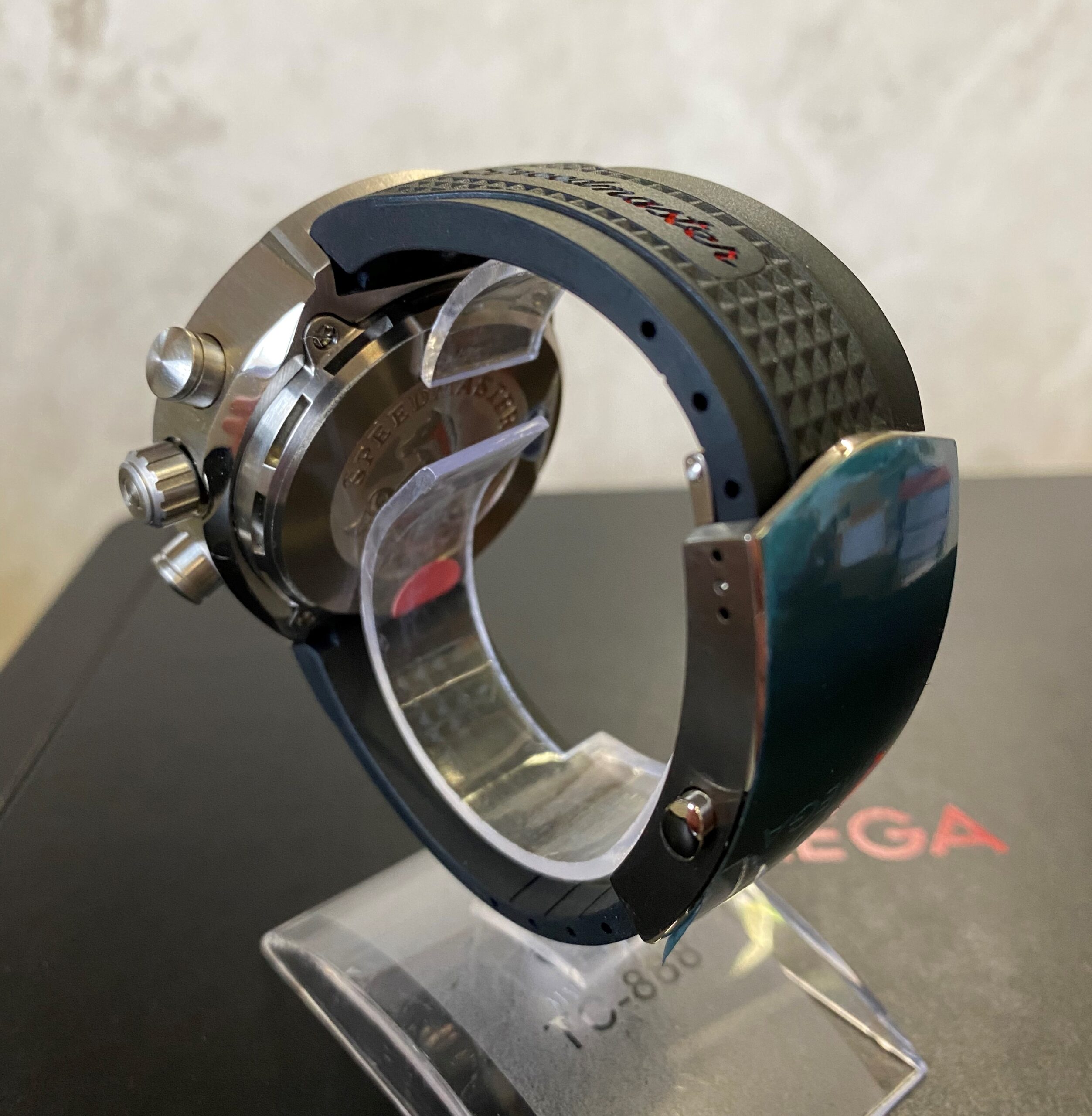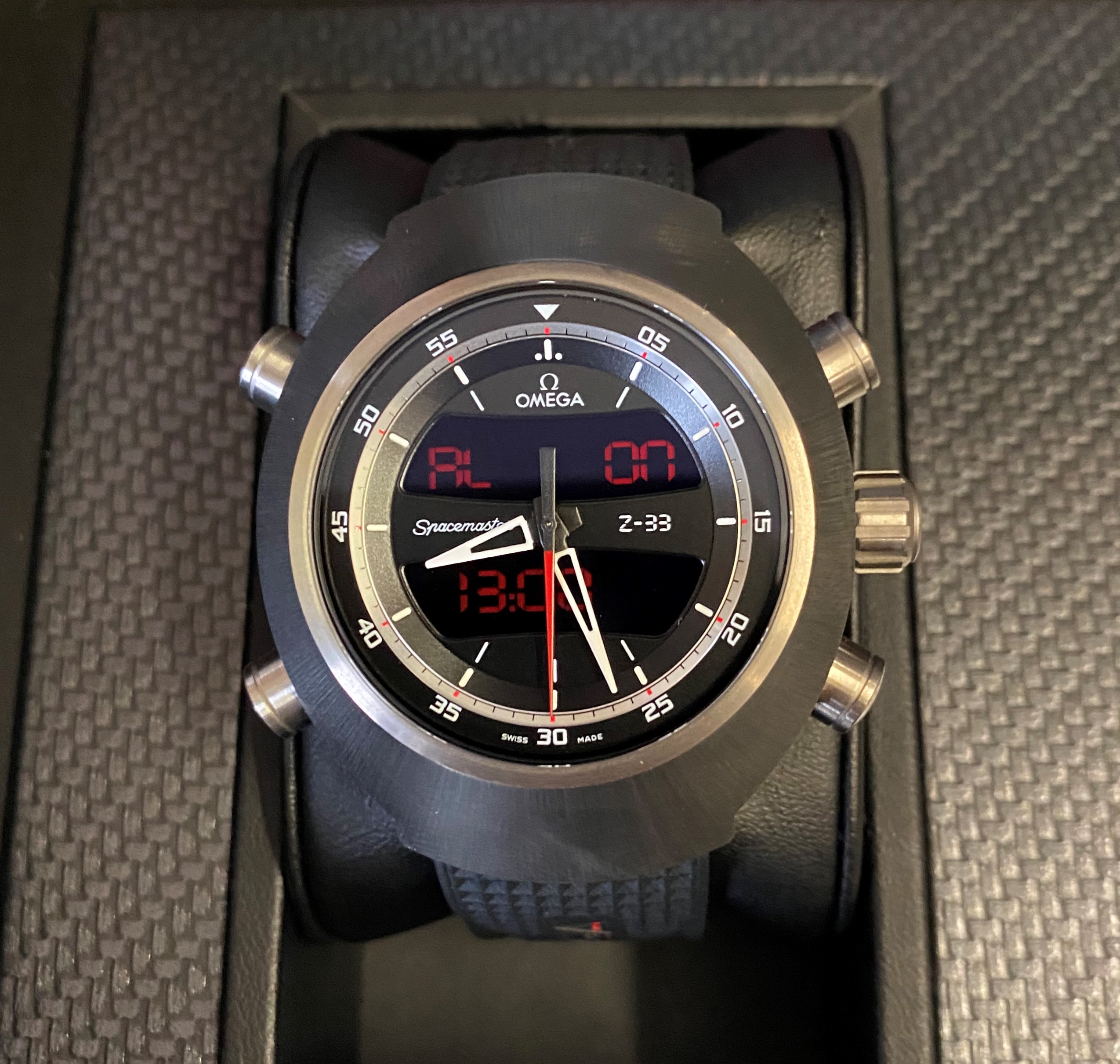 This OMEGA Speedmaster Spacemaster Z-33 is inspired by the iconic “Pilot Line” case shape of the firm and is equipped with a new and exclusive multifunction quartz movement, the caliber 5666. Floating above the digital dial, there is a set of hands. analogue measurement gauges, which are adjusted using the crown at 3 o’clock.