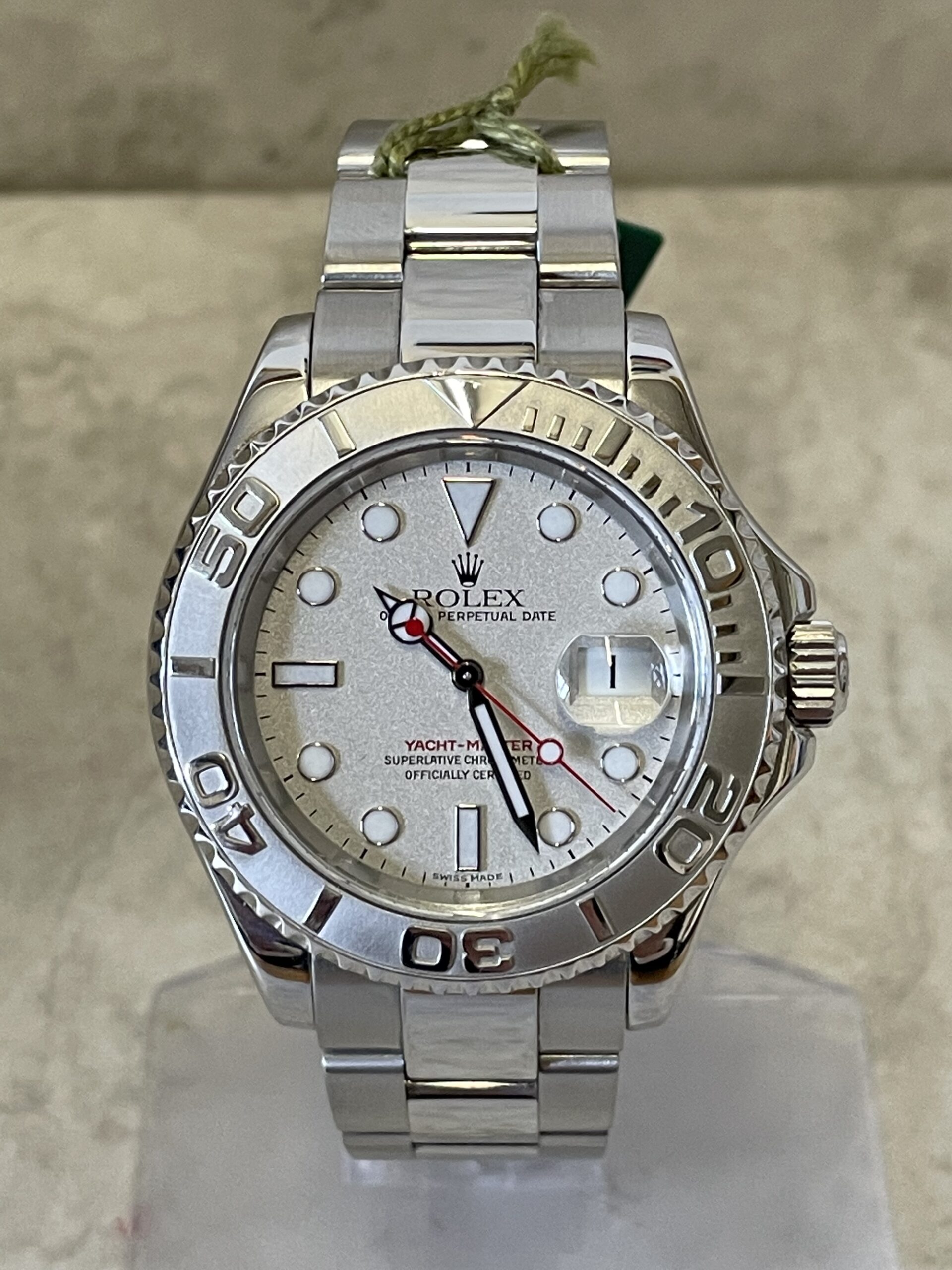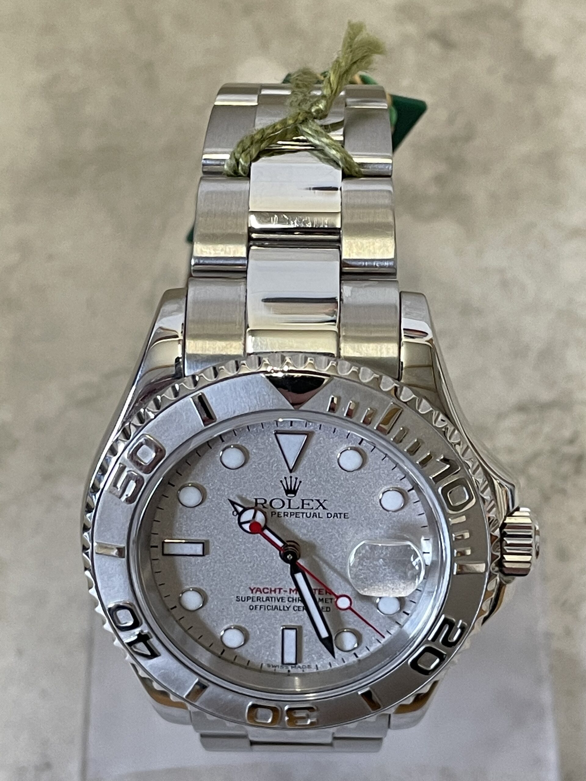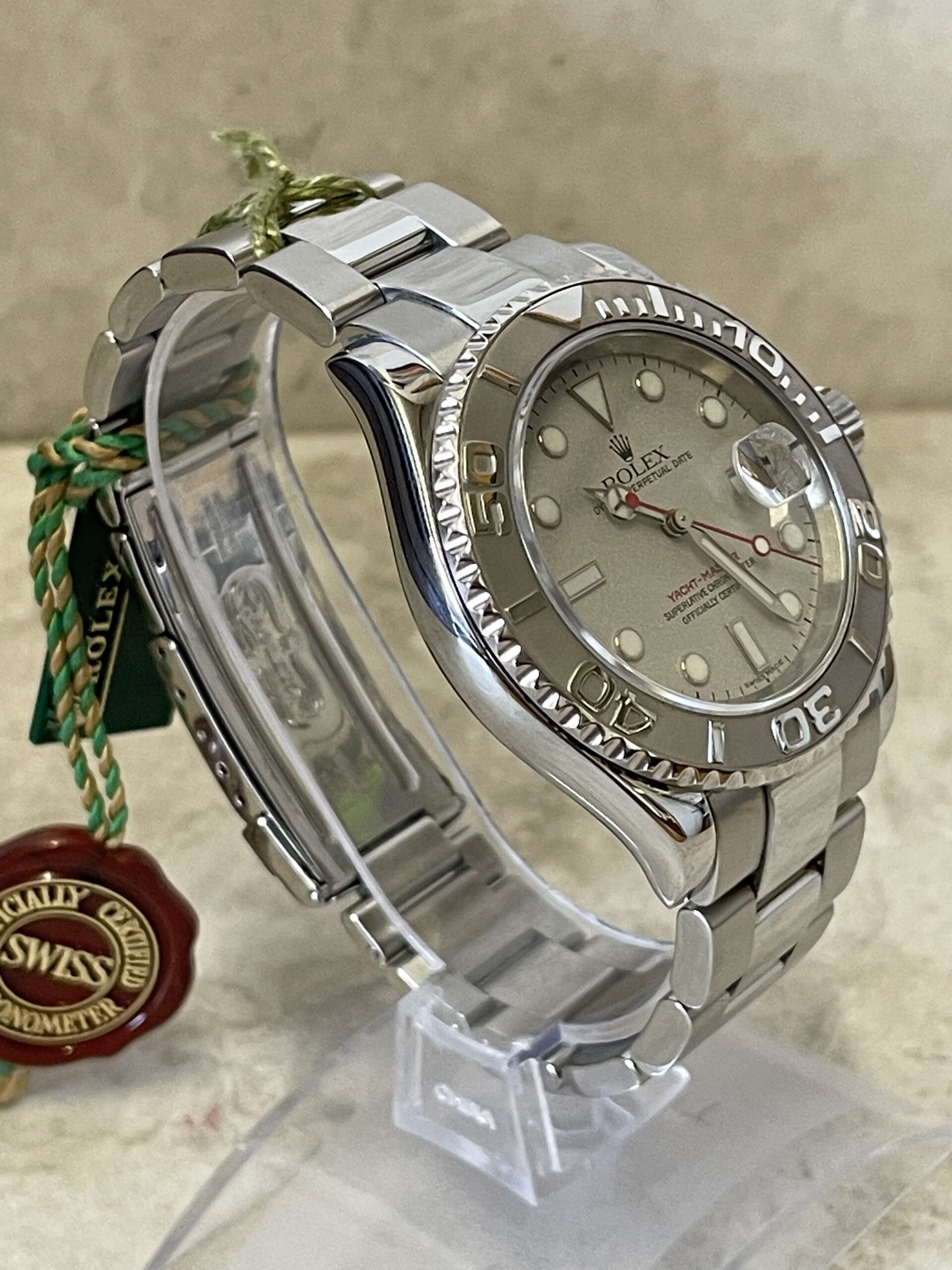 On the dial, a Maxi-style configuration is featured, complete with a white date aperture with a “Cyclops” magnifying lens, large hands and hour markers crafted from white gold, and some distinct color accenting unique to the Yacht-Master collection. Inside, the 16622 features the Rolex caliber 3135, an automatic movement with a 48-hour power reserve, an incredibly reliable, chronometer-grade movement used extensively by the brand.