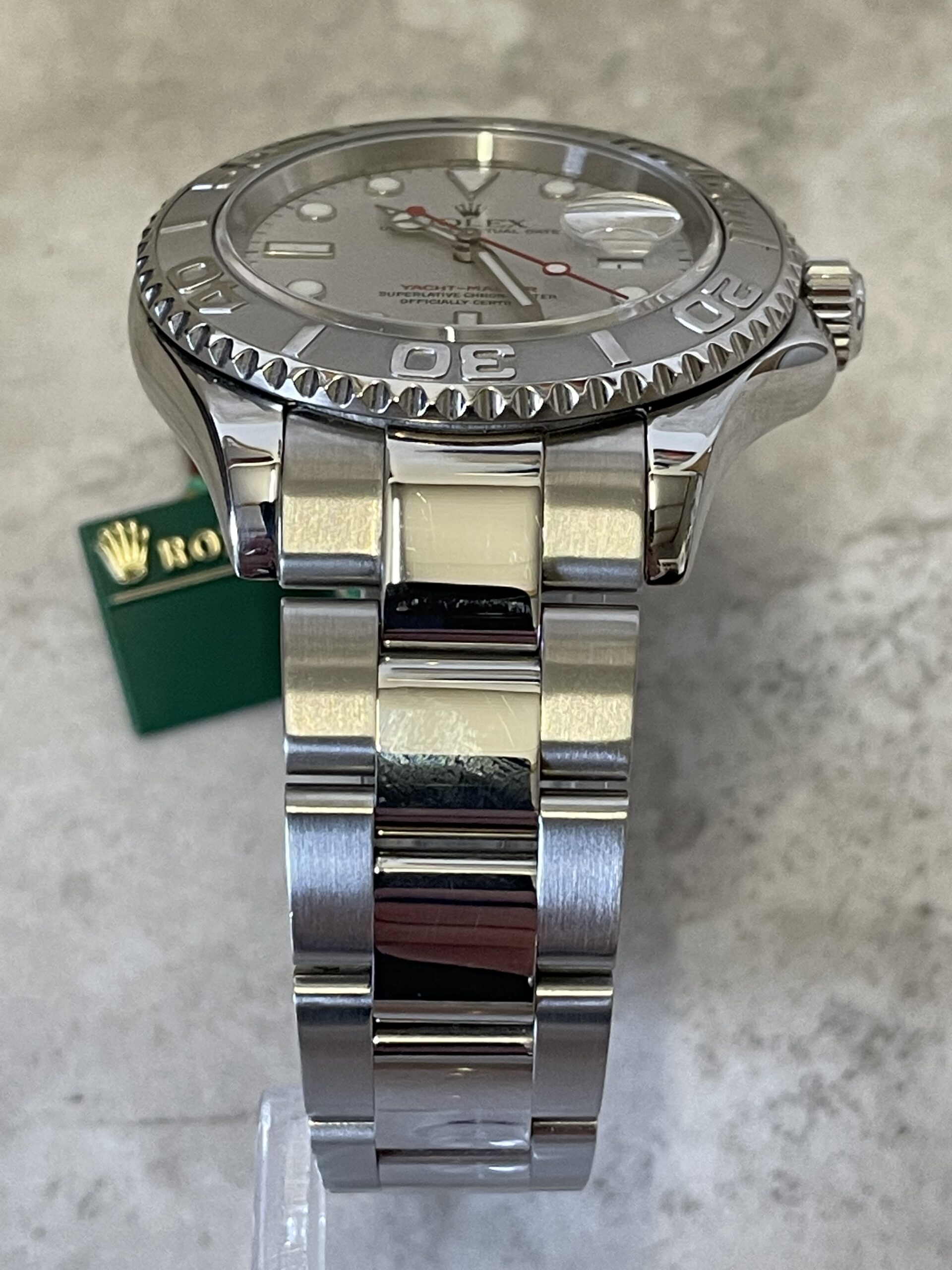 Here we have the first Yacht-Master in Rolesium – that is, platinum and steel – in the 1999-introduced ref. 16622. On the wrist – while somewhat weighty via its partial platinum construction – the watch wears more like a dress watch than a traditional sport watch. Measuring 40mm by 11.5mm, the watch sits low and tight on the wrist, with a curvy profile that more closely resembles the classic Rolex Oyster case design rather than the sharper “Super” profile found on most modern Submariners.